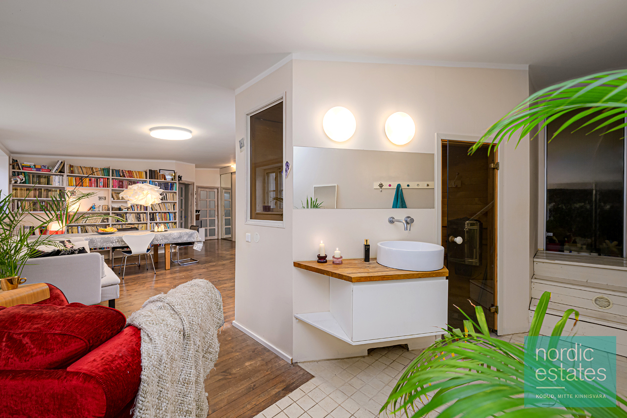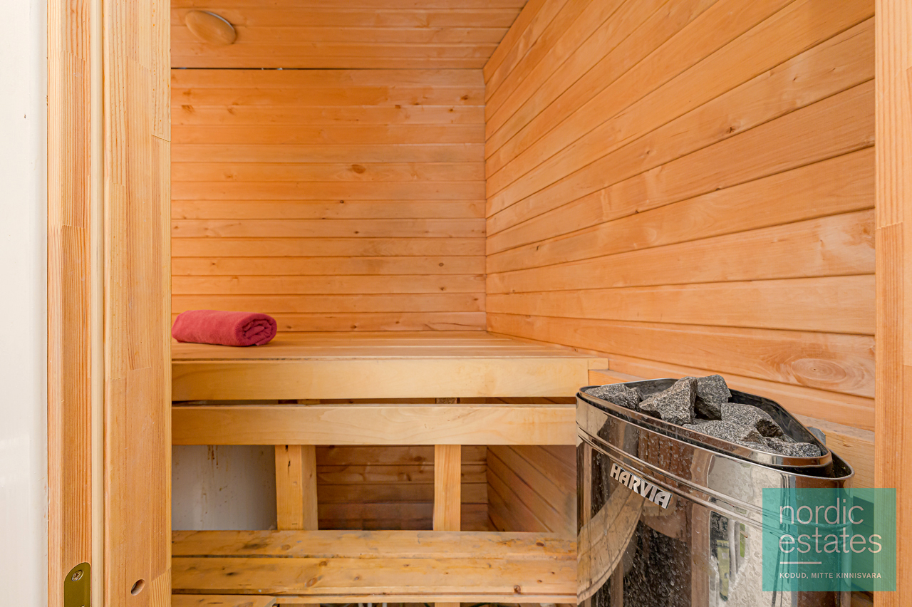 Teisel korrusel 45 m2 stuudiokorter, siit ei puudu ka saun ja rõdu.