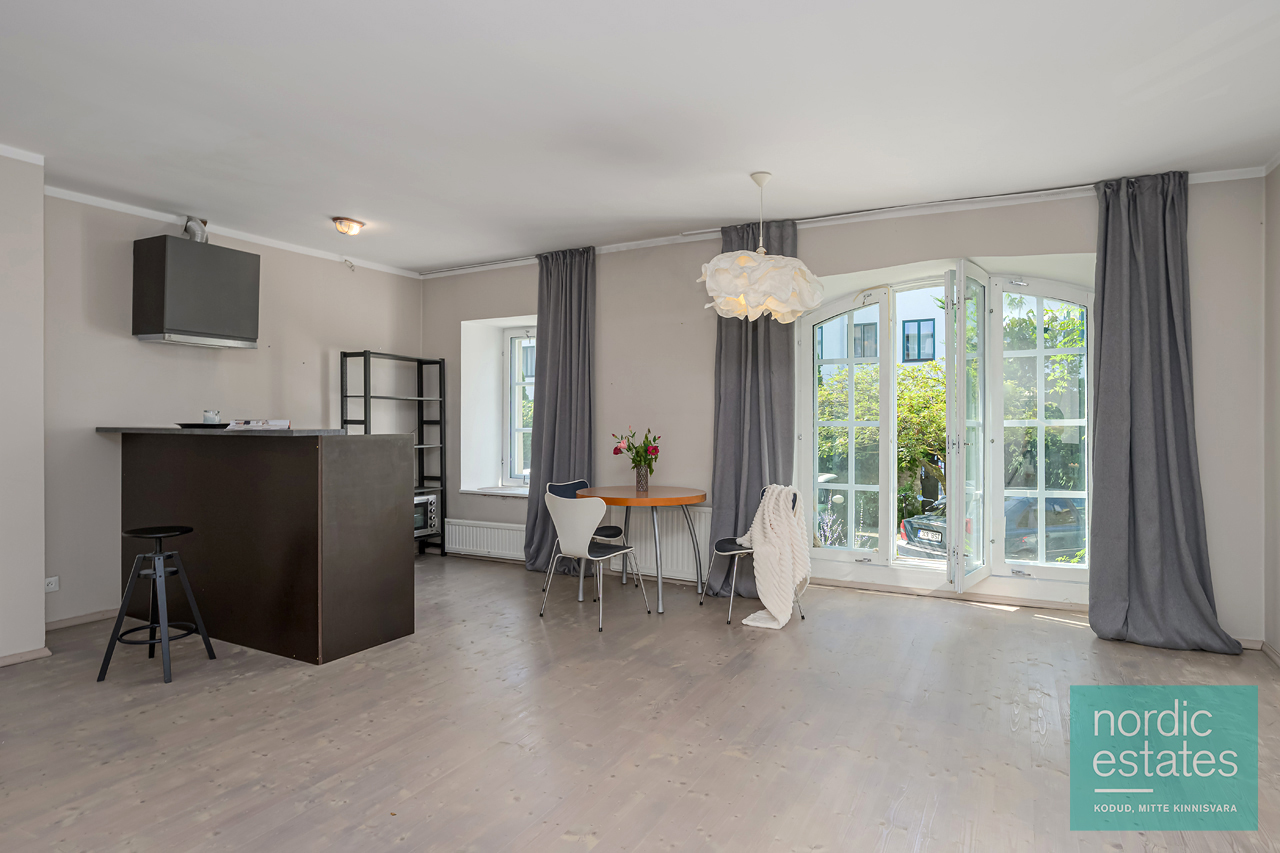 Esimesel korrusel asub samuti stuudiokorter, millel 42 m2 põrandapinda ja dekortatiivne kaaraken paneb iga sisekujundja silma särama.