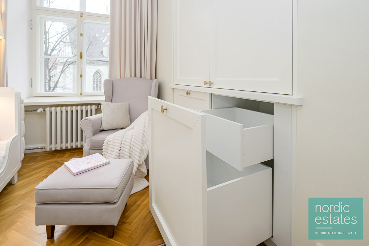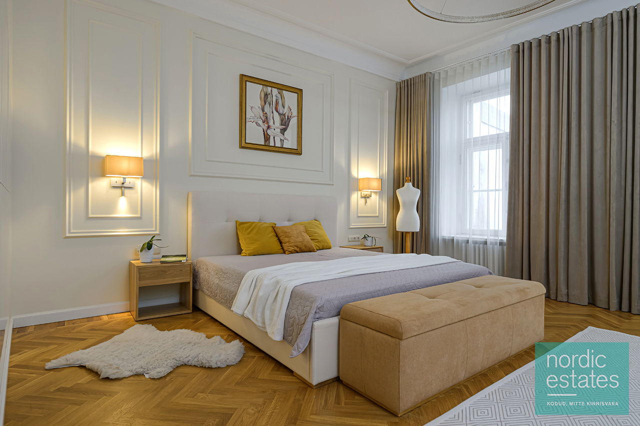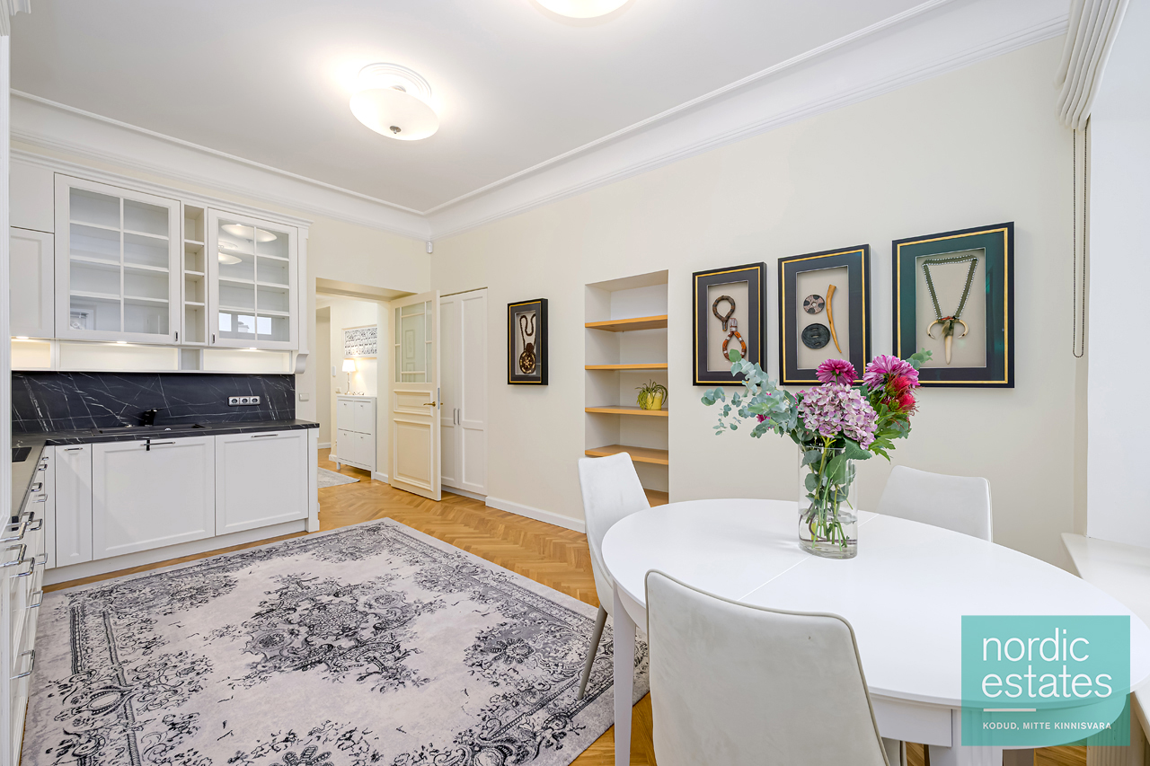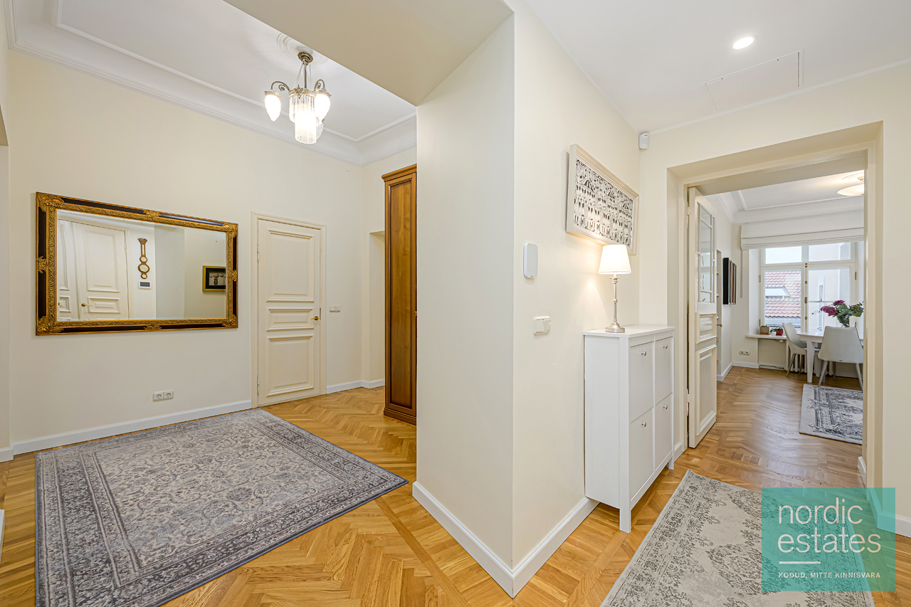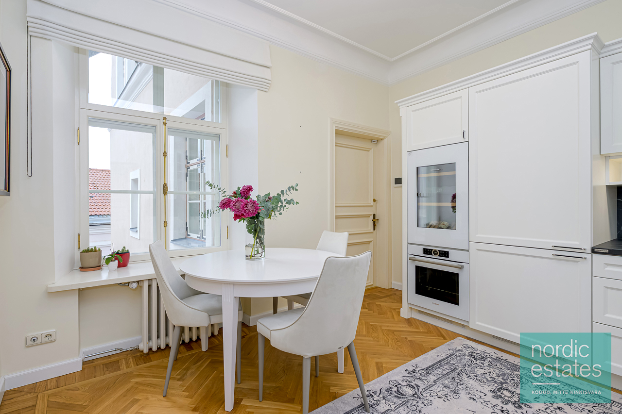 KORTER on läbi maja planeeringuga, aknad vaatavad kahte suunda, asub maja viimasel korrusel. Kogu korter on renoveeritud täielikult aastal 2021. Üürnikul on võimalus üürida korterit nii möbleeritult (fotodel) või möbleerimata. Korteris olev mööbel on valminud eritellimusel. Veinisõbrad hindavad veinikülmiku olemasolu, lisaks on köögis kogu tehnika, et valmistada ette üks tore perekondlik koosviibimine või korraldada kasvõi pritvaatsem vastuvõtt. Soliidsust ja väljapeetust leiad igal sammul. Hubasteks õhtuteks kahhelkividest ahi. Lastetuba on soovi korral ringi kohendatav ka kabinetiks ja/või külalistetoaks. Vannituba pakub nautlemist ja päevaväsimuse mahalaadimise võimalust.