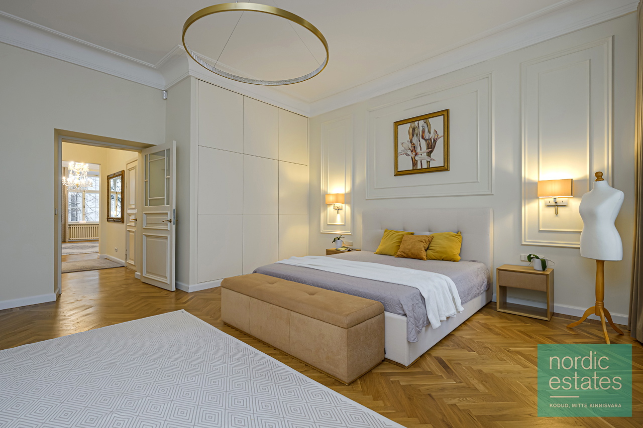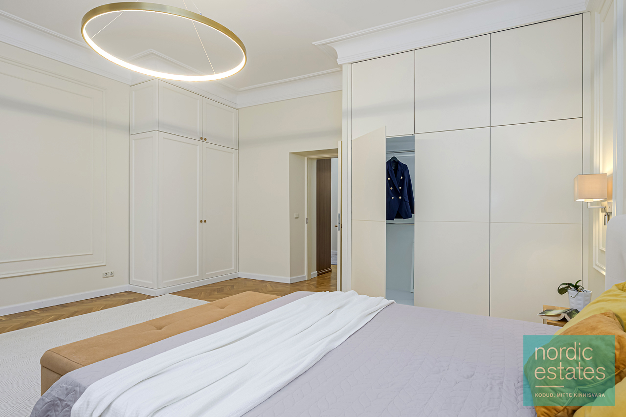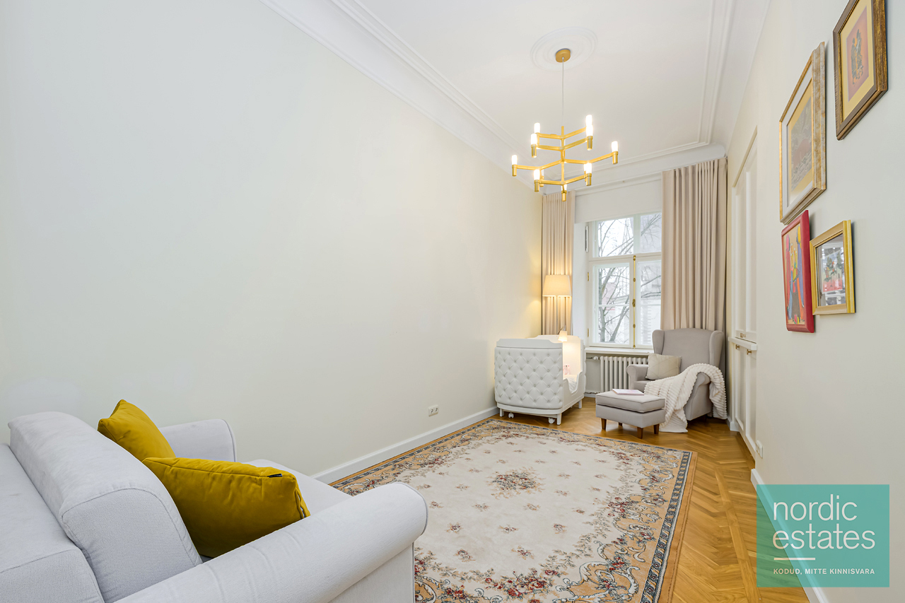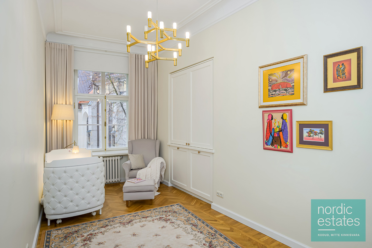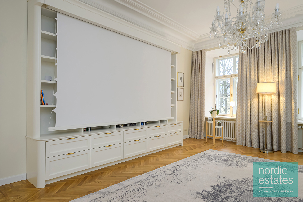 KORTER on läbi maja planeeringuga, aknad vaatavad kahte suunda, asub maja viimasel korrusel. Kogu korter on renoveeritud täielikult aastal 2021. Üürnikul on võimalus üürida korterit nii möbleeritult (fotodel) või möbleerimata. Korteris olev mööbel on valminud eritellimusel. Veinisõbrad hindavad veinikülmiku olemasolu, lisaks on köögis kogu tehnika, et valmistada ette üks tore perekondlik koosviibimine või korraldada kasvõi pritvaatsem vastuvõtt. Soliidsust ja väljapeetust leiad igal sammul. Hubasteks õhtuteks kahhelkividest ahi. Lastetuba on soovi korral ringi kohendatav ka kabinetiks ja/või külalistetoaks. Vannituba pakub nautlemist ja päevaväsimuse mahalaadimise võimalust.