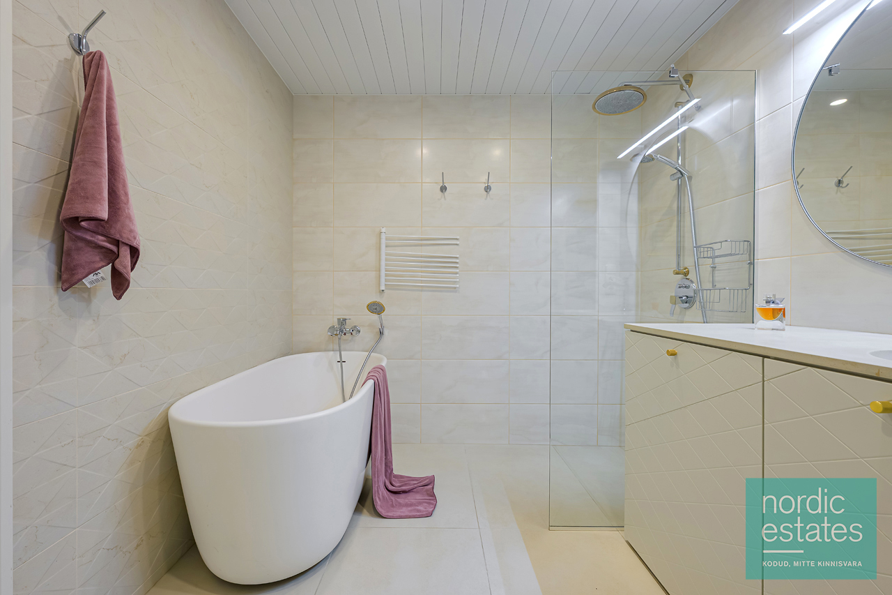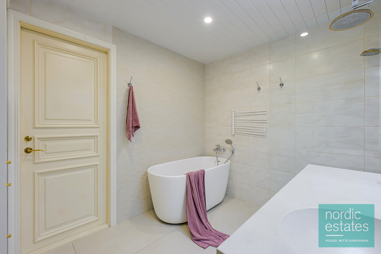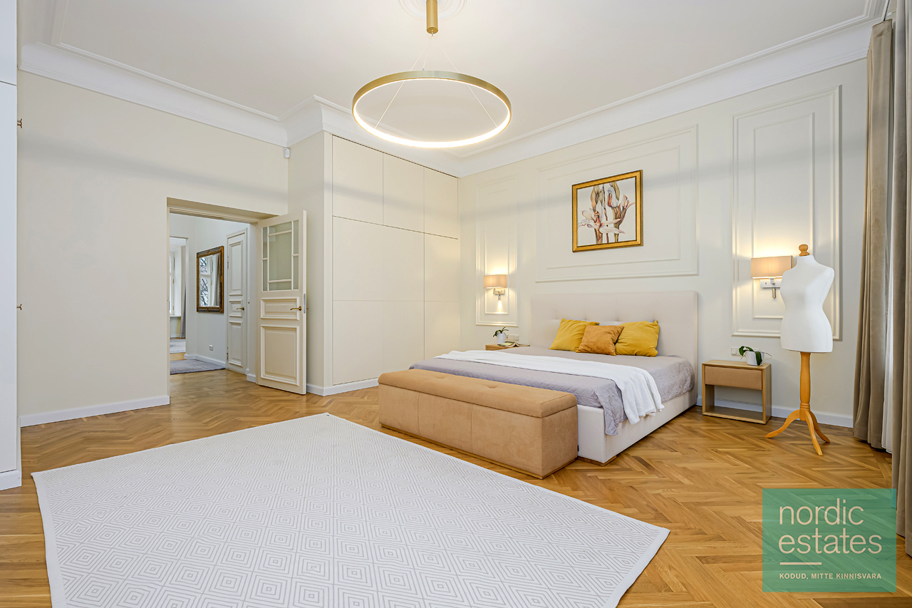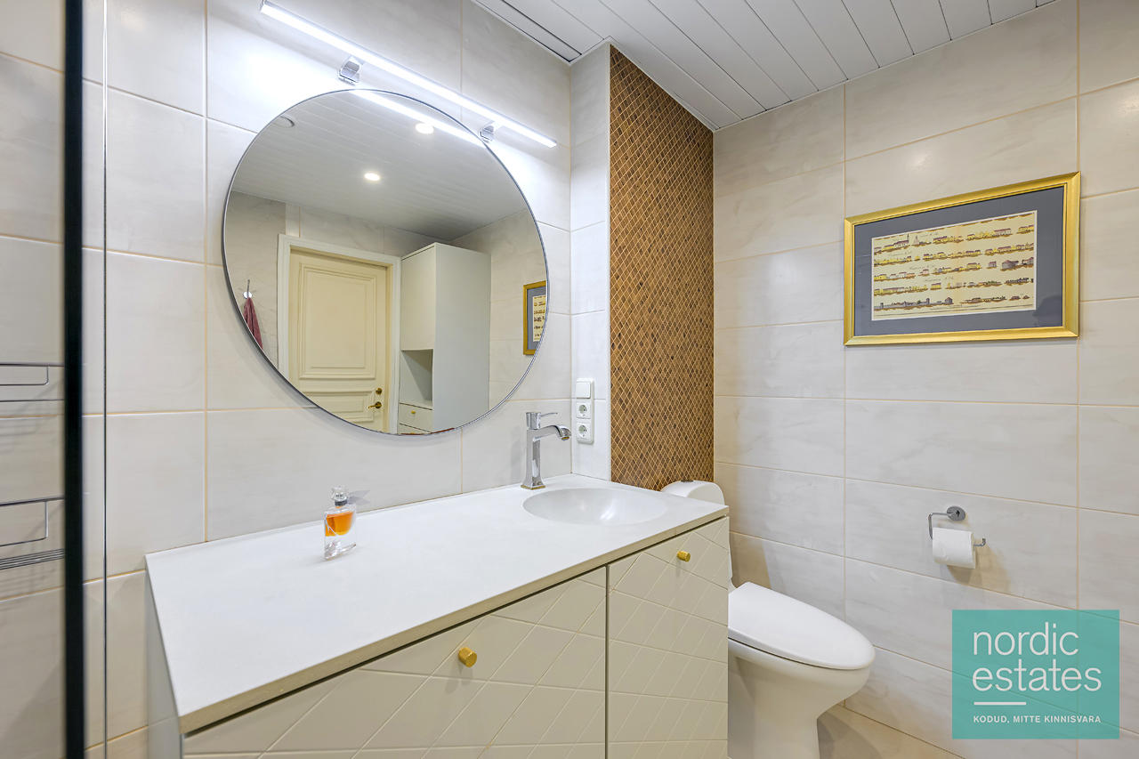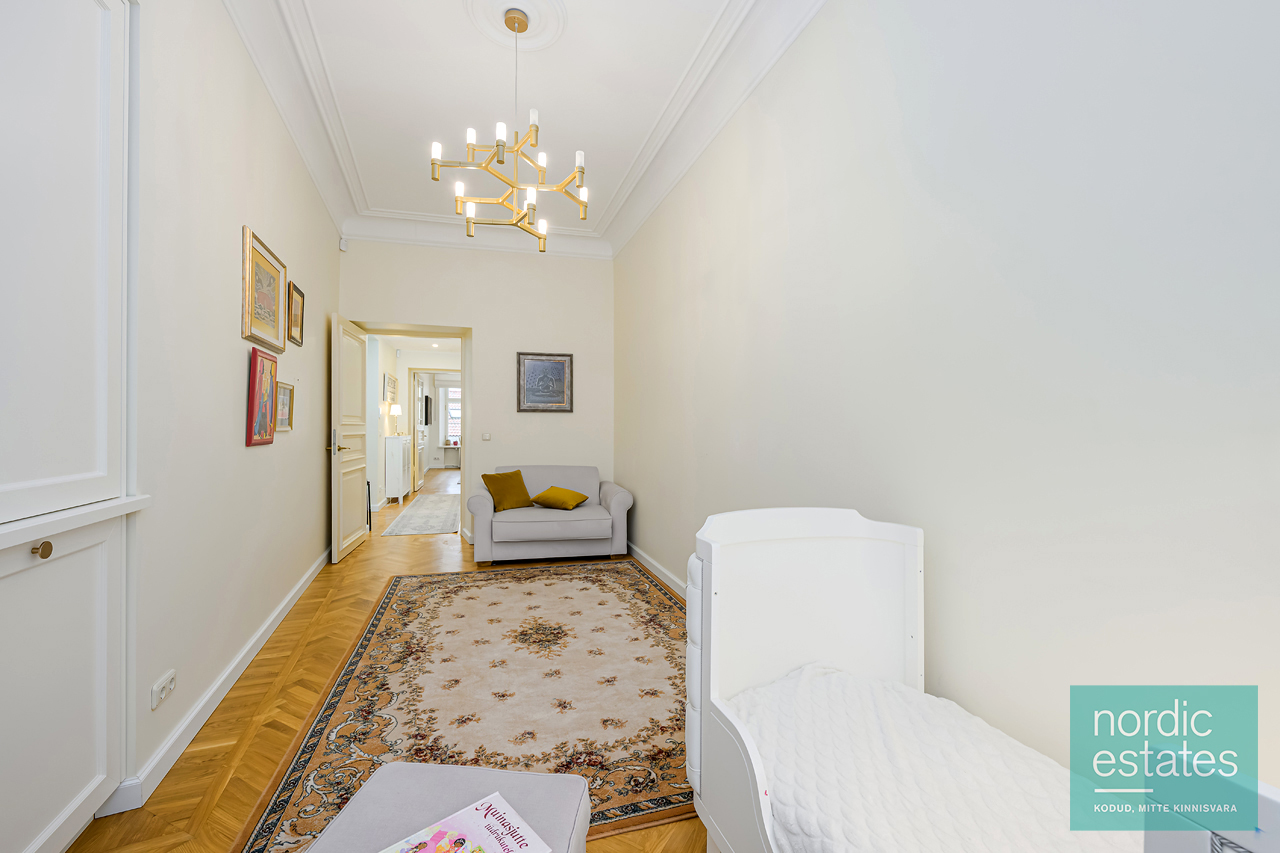 KORTER on läbi maja planeeringuga, aknad vaatavad kahte suunda, asub maja viimasel korrusel. Kogu korter on renoveeritud täielikult aastal 2021. Üürnikul on võimalus üürida korterit nii möbleeritult (fotodel) või möbleerimata. Korteris olev mööbel on valminud eritellimusel. Veinisõbrad hindavad veinikülmiku olemasolu, lisaks on köögis kogu tehnika, et valmistada ette üks tore perekondlik koosviibimine või korraldada kasvõi pritvaatsem vastuvõtt. Soliidsust ja väljapeetust leiad igal sammul. Hubasteks õhtuteks kahhelkividest ahi. Lastetuba on soovi korral ringi kohendatav ka kabinetiks ja/või külalistetoaks. Vannituba pakub nautlemist ja päevaväsimuse mahalaadimise võimalust.