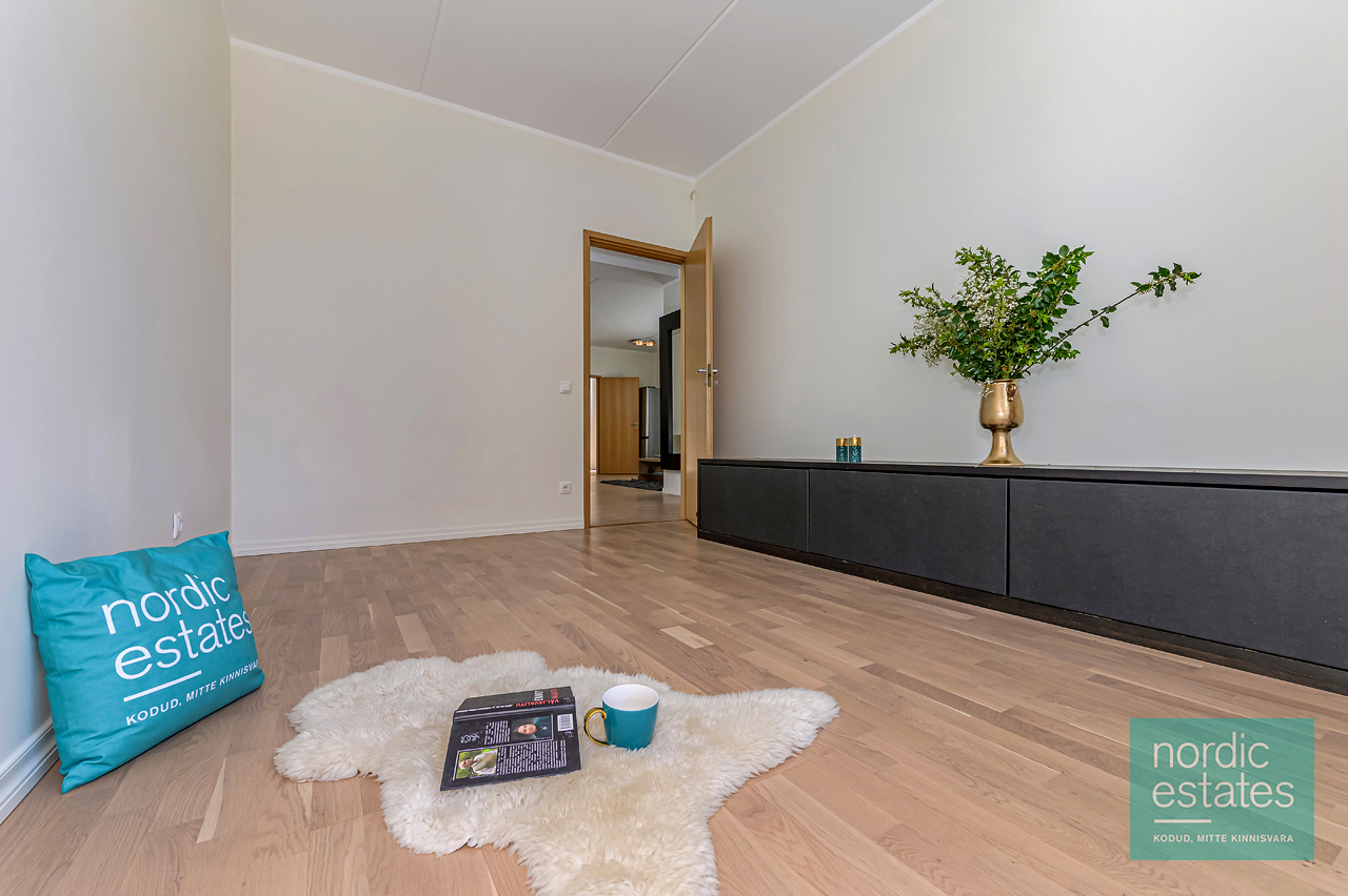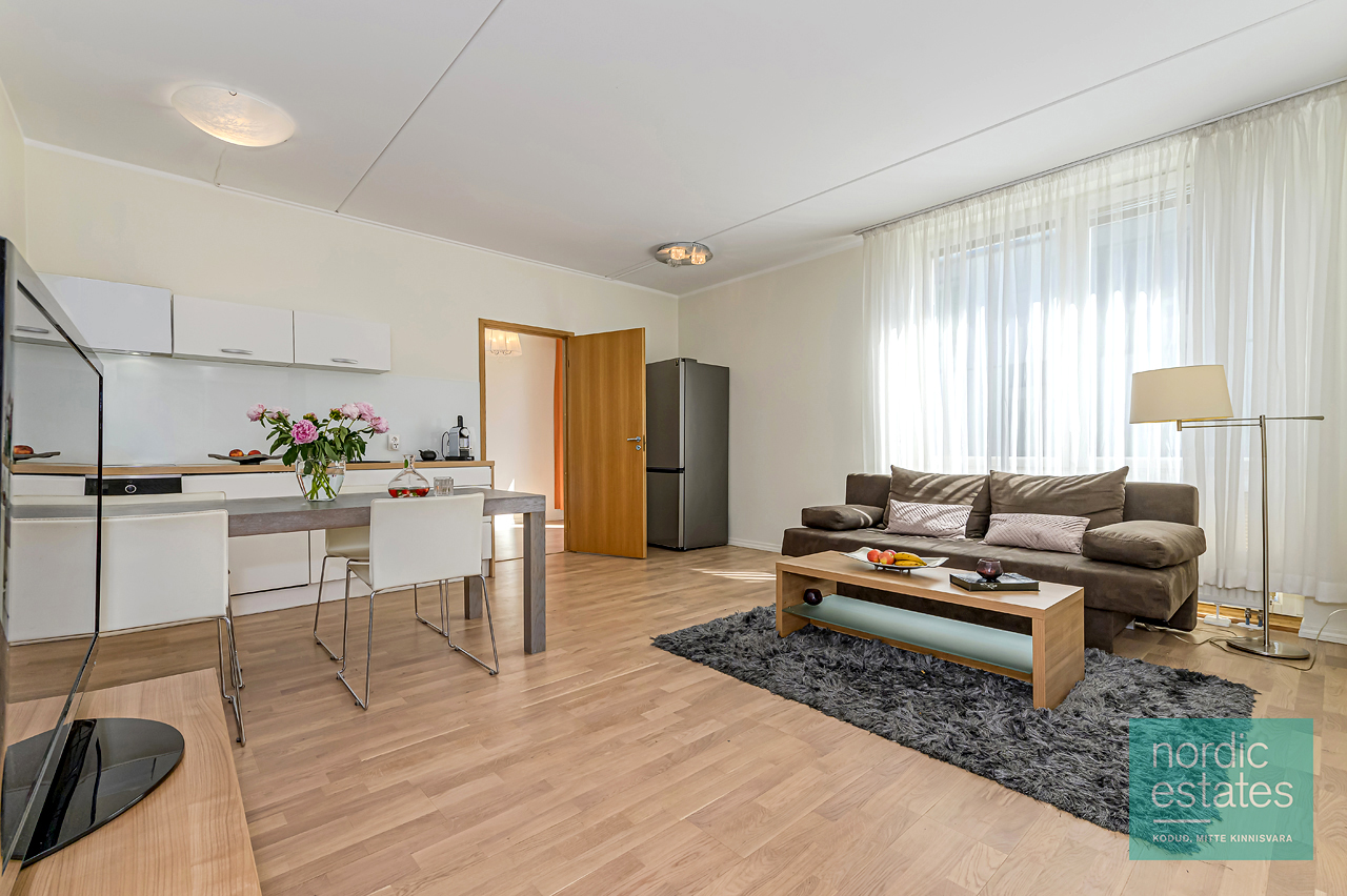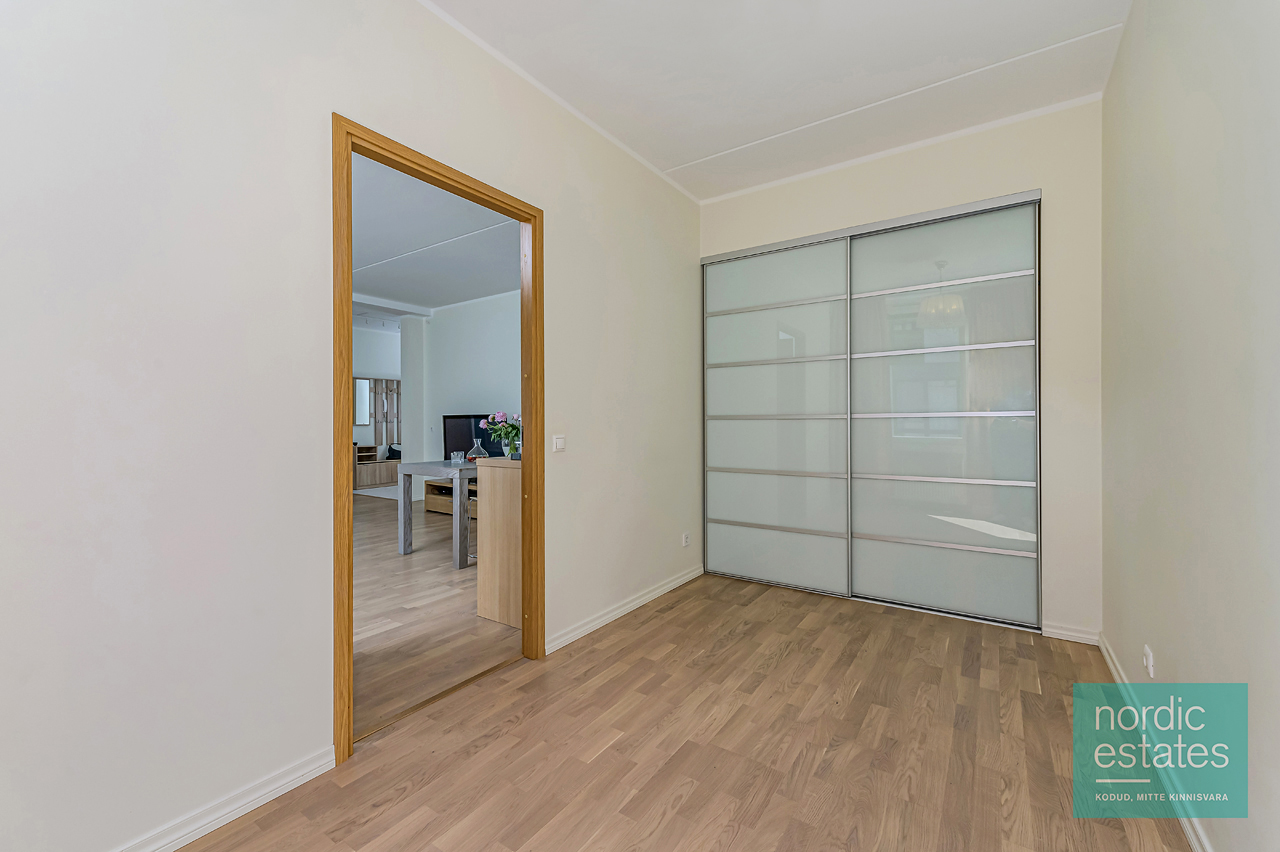 KODU, mis asub maja 2. korrusel on peresõbraliku planeeringuga. See kodu on kergvaheseina abil muudetud kolmetoalisest, neljatoaliseks. Soovi korral on võimalus muuta korter taas 3-toaliseks. See kodu on nii praktiline kui ilus ühtaegu – tulijat tervitab kaunis marmorpõrand esikus, kust ka porisema jälje saab lihtsa vaevaga eemaldada. Muus osas katab korteri eluruume naturaalne tammeparkett, mis on paigaldatud paar aastat tagasi. Elutuba-köögiosa on kodu keskmes ning ühele poole jääb kaks magamistuba ja teisele poole üks magamistuba. Köögis olemas nõudepesumasin, et jääks rohkem aega perele. Väikses magamistoast leiad väga mahuka garderoobikapi. Seinad heledates toonides, lastes Sul luua isiklike mööbliesemetega selle oma kodu tunde. Aknaga vannituba on ruumikas ning vannimõnusid võid nautida ka loomuliku valguse käes. Kõikides tubades aknakatted, sh vannitoas.