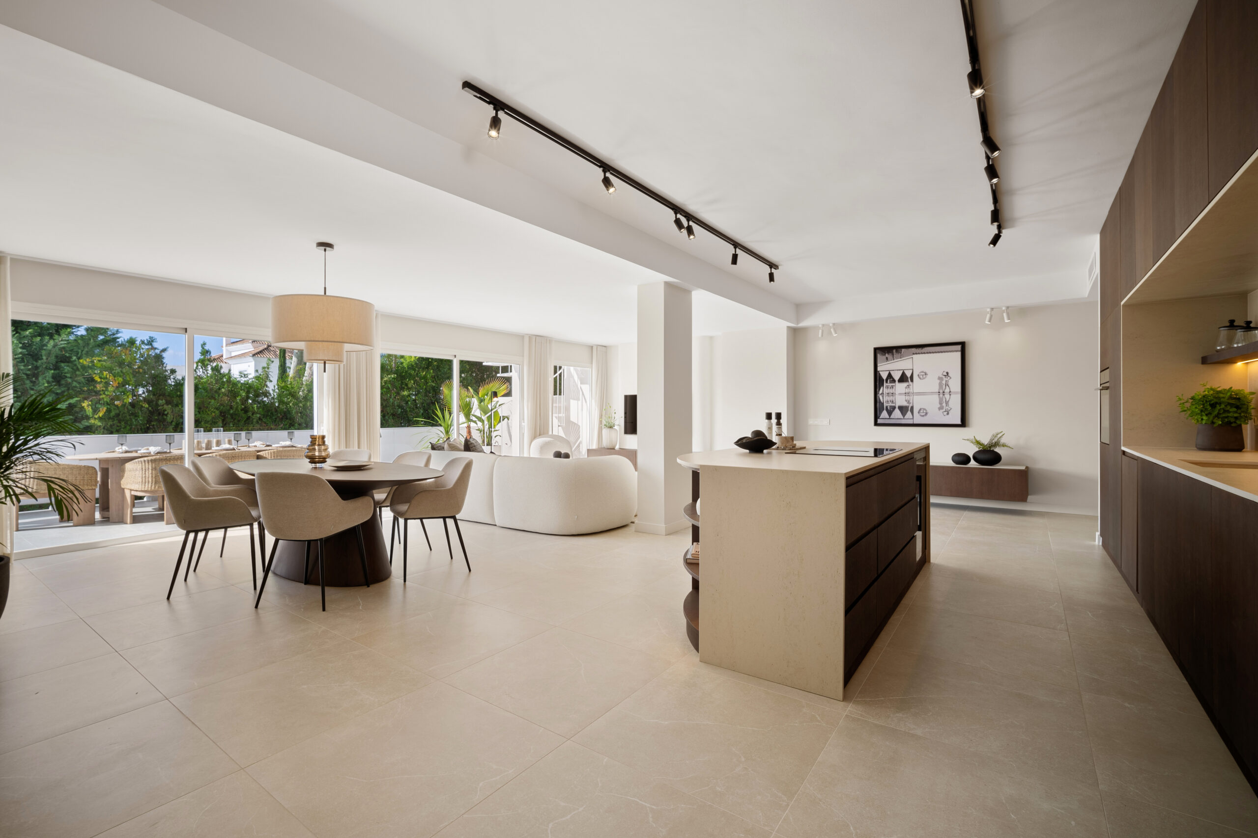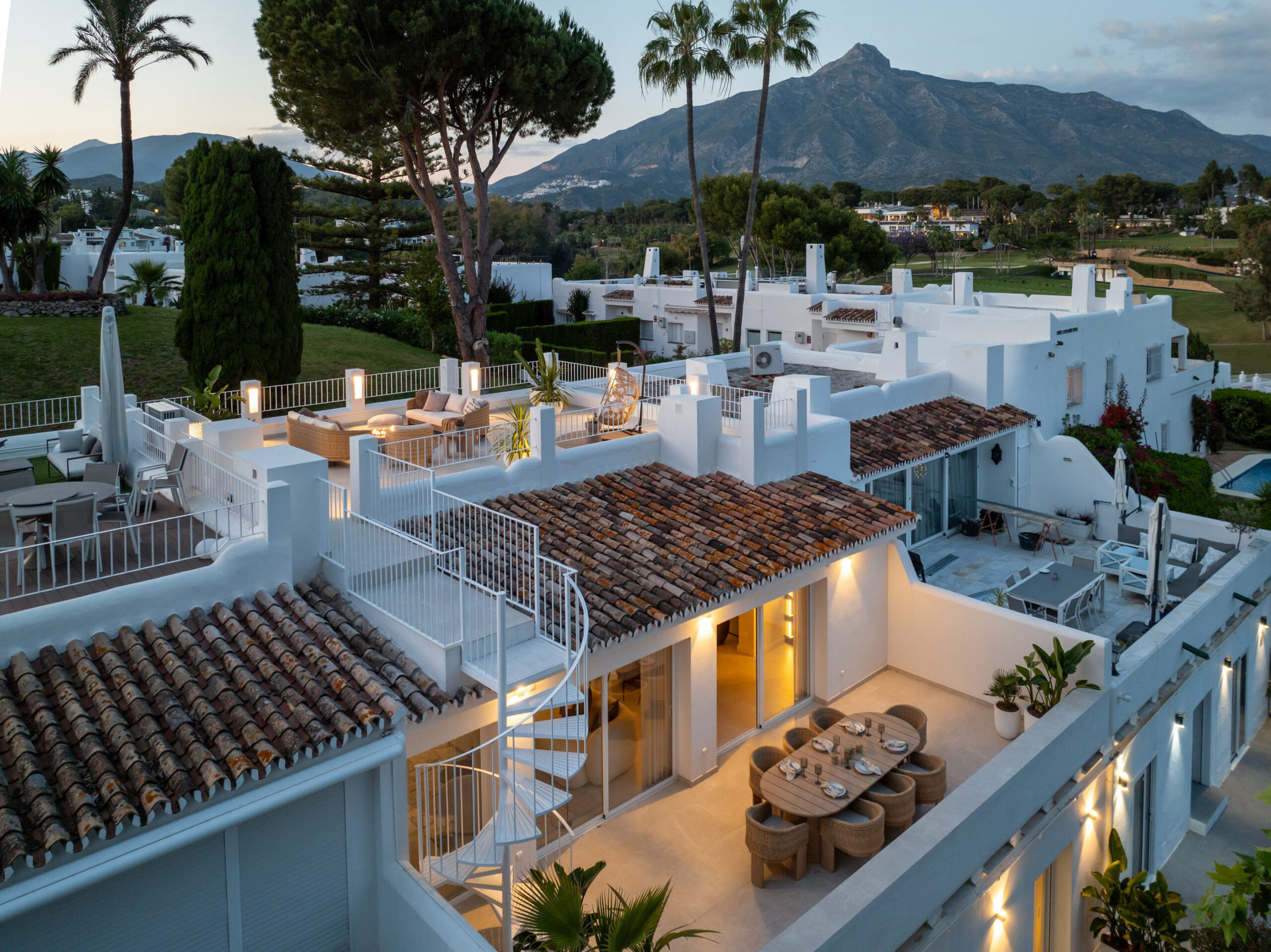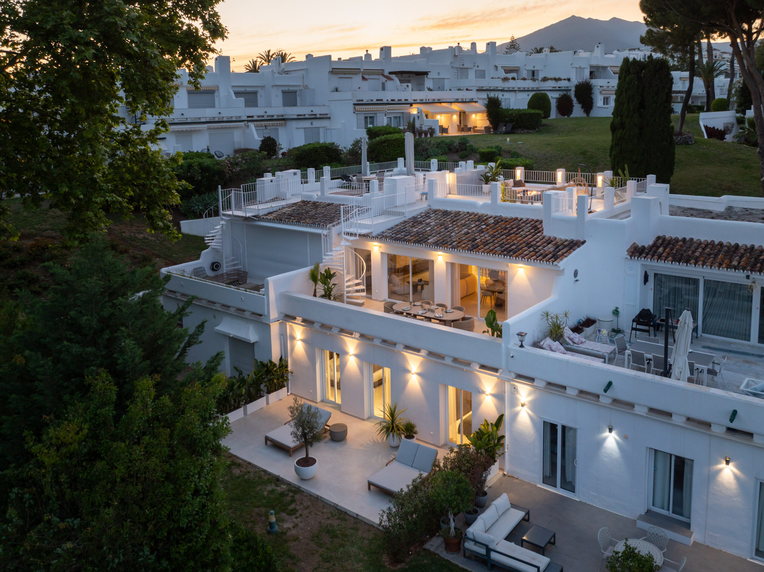 See värskelt renoveeritud lõunasuunaline ridaelamu pakub kaasaegset elegantsi, rohkelt loomulikku valgust ning vapustavaid vaateid Vahemerele. Avatud köögilahendus sulandub sujuvalt avarasse elutuppa, luues ideaalse keskkonna nii igapäevaeluks kui ka meelelahutuseks